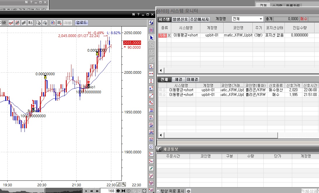 수동매매는 잘 되는데 자동매매는 매수매도 신호가 떠도 실제 매매는 이루어지지 않네요. 어떻게 해결해야 하는 지 조언 부탁드립니다.