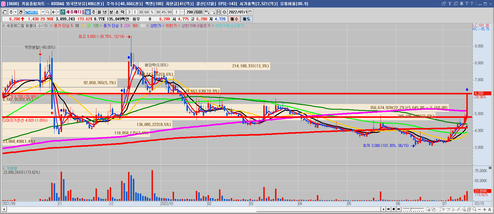 마지막으로 예스트레이더에 차트 기능에 있는