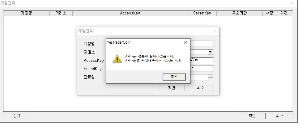 >> 제목 : 계정 추가가 안됩니다;;업비트에서 새로 발급받은 Open API 정보를