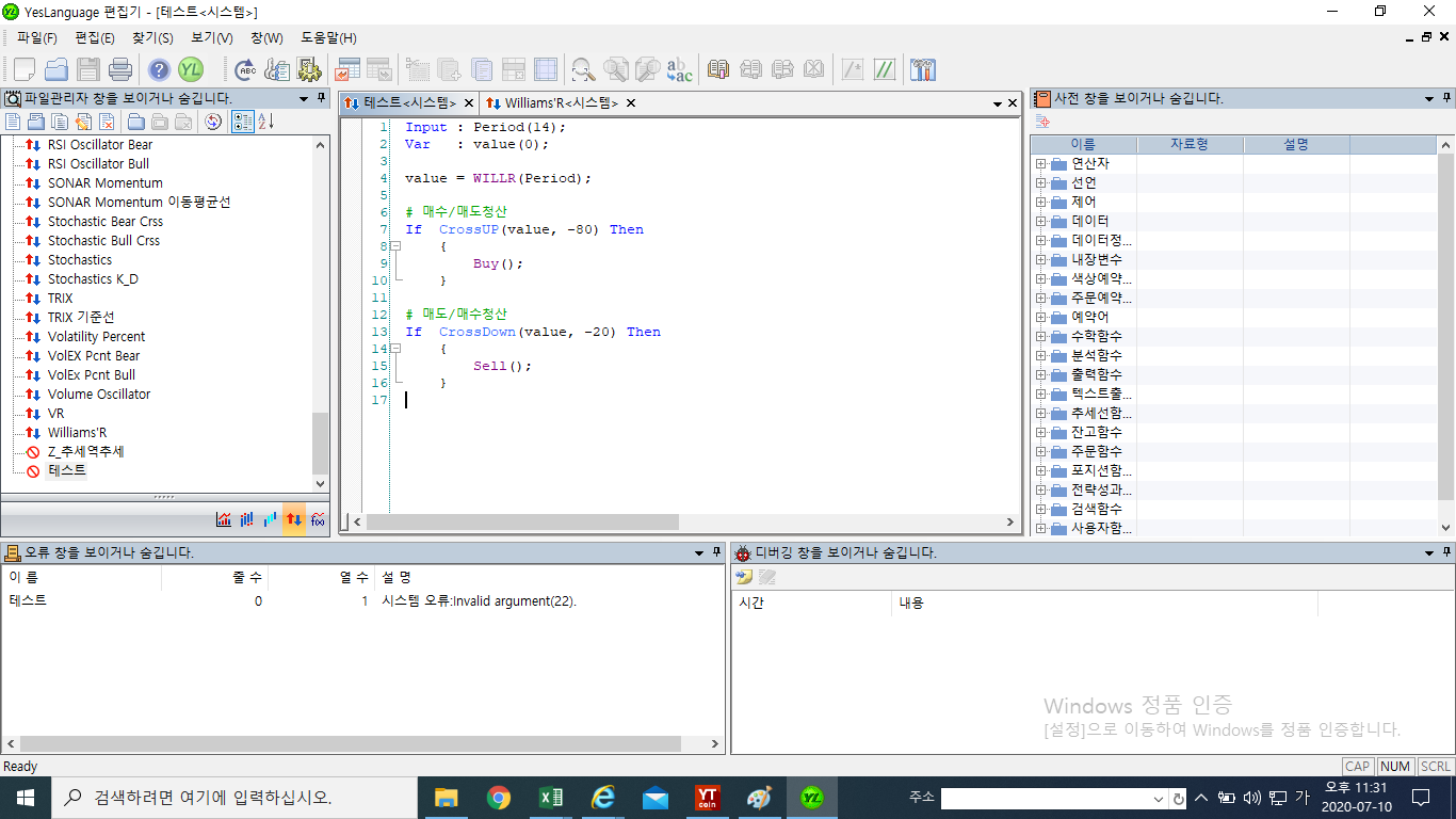 지금까지 예스트레이더로는 수많은 시스템과 수식을 잘 생성해서 사용했기 때문에, 예스트레이더코인 버그일 수 도 있다고 생각되어 문의드립니다.