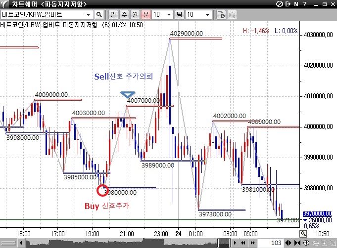 또한 지지하단 과 저항 상단에서 매수/매도 신호를 넣을수 있으면 좋겠습니다.