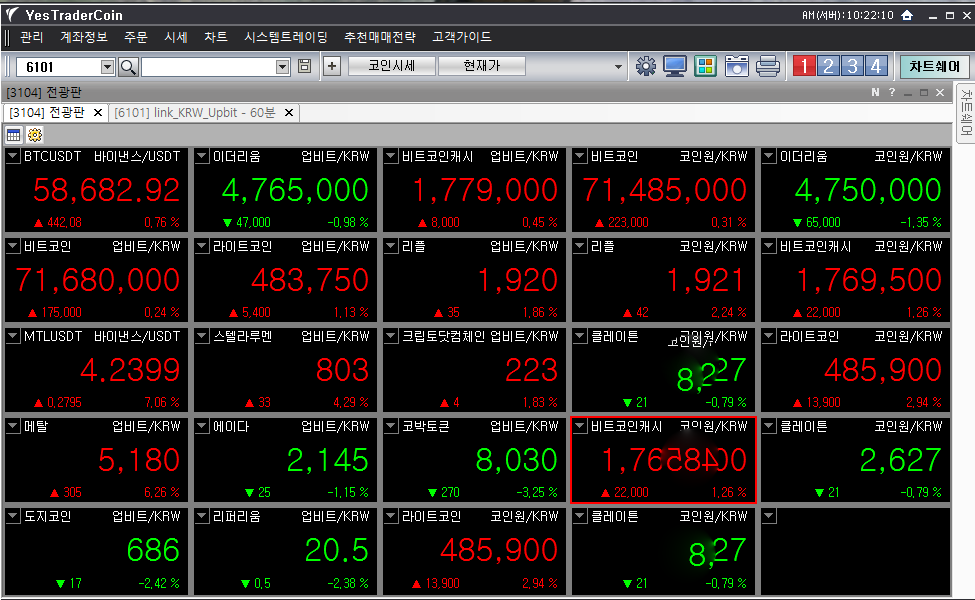 분할된 전광판의 종목을 비우고자 할때는 어떻게 해요?
