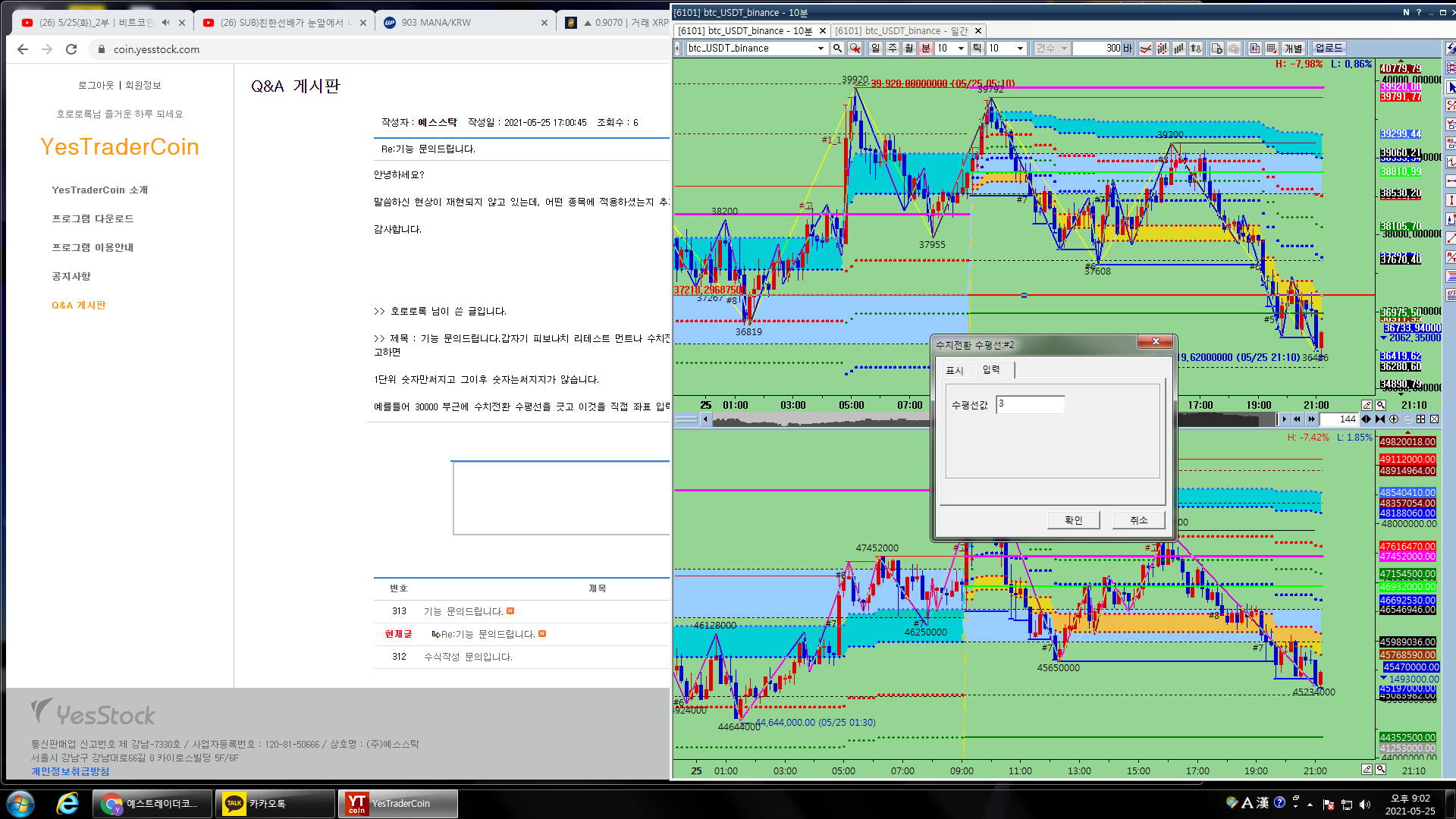 >> 제목 : 기능 문의드립니다.갑자기 피보나치 리테스트 먼트나 수치전환 수평선 사용시 선을 긋고 우측 눌러서 속성들어가서 값을 직접 지정해주려고하면