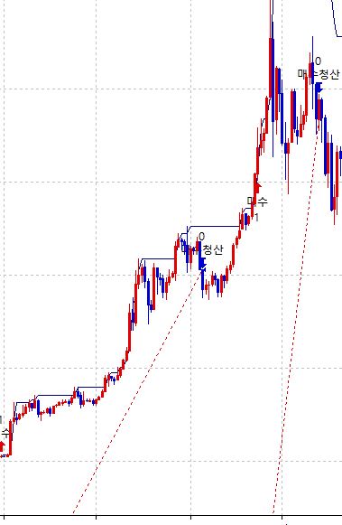 사진에서 보듯이 매수와 매수청산의 연결된 선이 이상한곳에 찍힙니다.