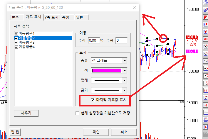 그 중 '마지막 지표값 표시'에 체크된 것이 있을 것입니다.