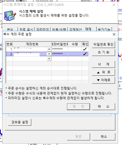 >> 제목 : 복수계좌 체크시 확인버튼 비활성화자동주문 체크 -> 복수계좌 체크 시 확인버튼이 비활성화 됩니다