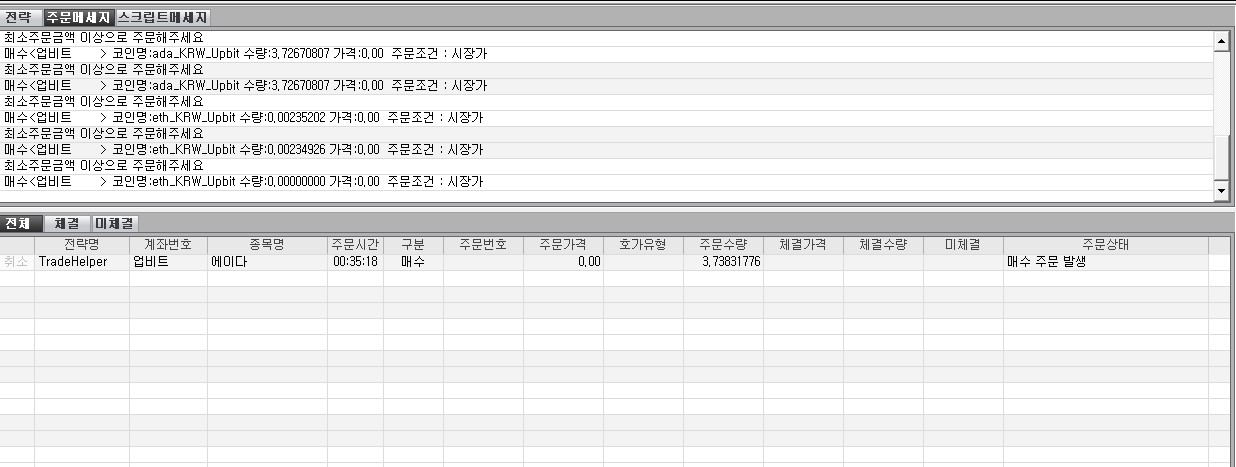 0으로 입력한 4, 6 번째 파라메터에 현재가, 투입금액 등을 입력하고 실행해도 계속 같은 메세지가 뜹니다.