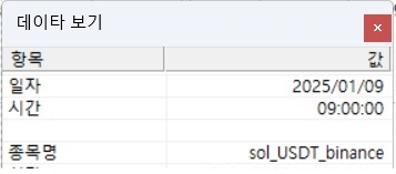 차트 데이타 보기창을 열면 날짜가 2025. 1. 9.로 뜹니다.